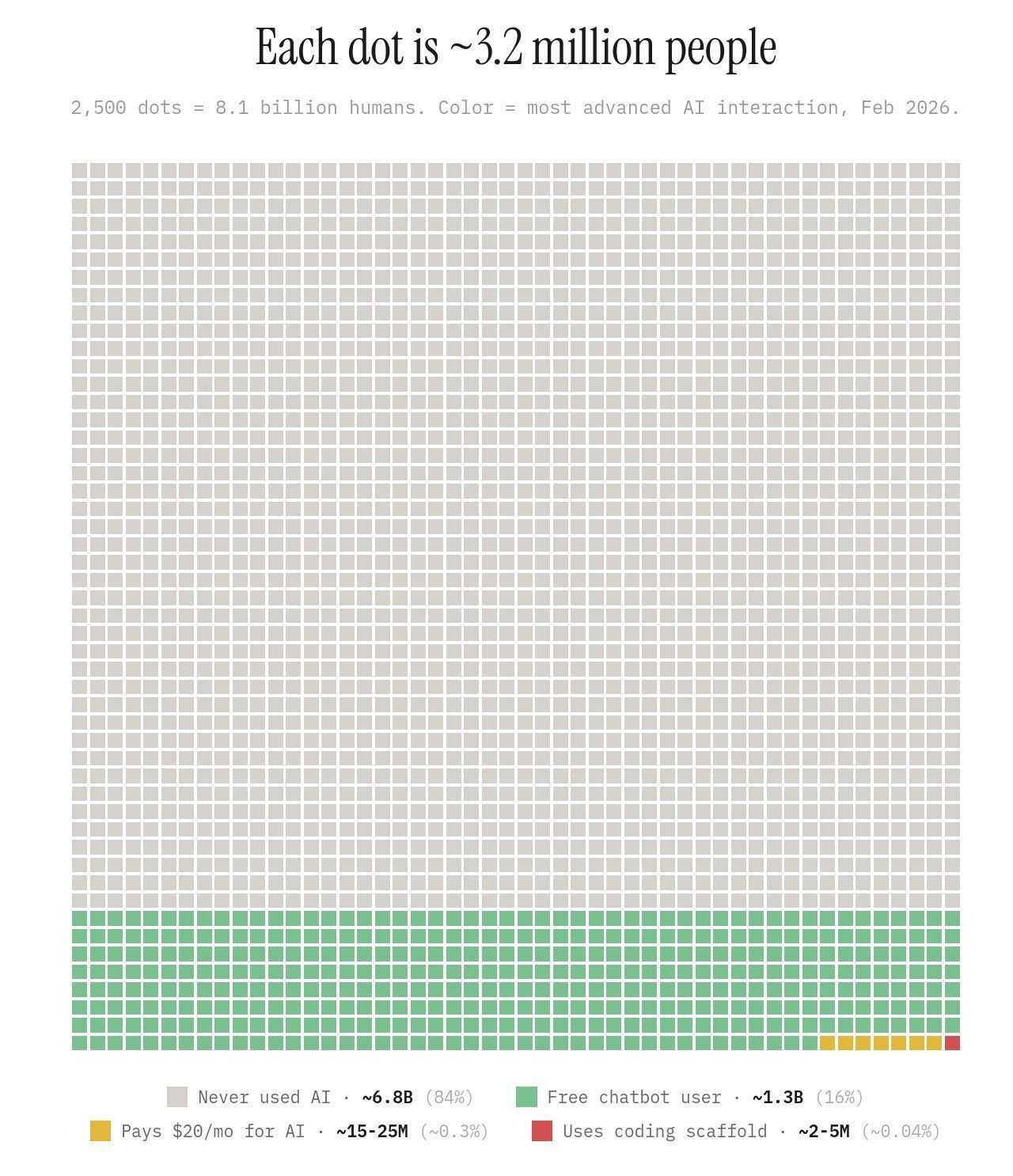There's a good chance you're in the yellow or red. Which means your entire perception of how "mainstream" AI is comes from a bubble so small it's almost invisible on this chart.